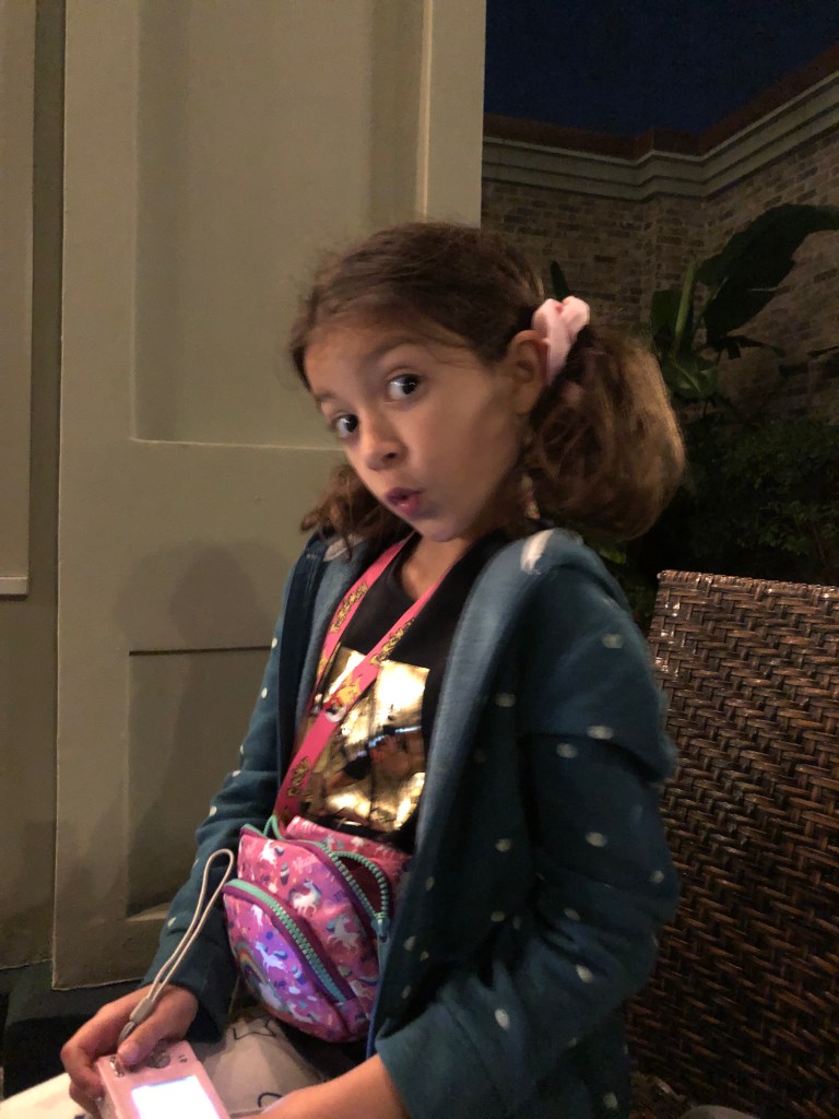 The girls and I went to the pool, where we went down the slide and swam around until the water started to get a little cold. Given this was one of the main reasons that we chose this resort, I felt we got some pretty good use out of it. After Grandma and Papa got back, we all went to Disney Springs to grab dinner. We ended up eating at Cookes of Dublin, an Irish restaurant famous for fish & chips. While the food was pretty darn good, they initially got Papa and I’s order wrong, so it felt like the day was just continuing on as it had been.