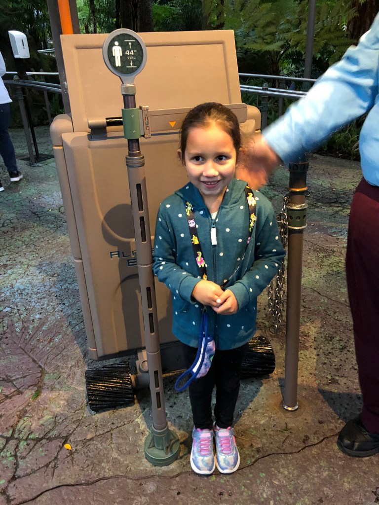 But once we got to the pre-ride video, things took a pretty hard fall. In the video, to instill a sense of realism into the riders, the cast member / scientist talked about us being connected with our Avatars, which was a little too real for Elaina. While I certainly tried to calm her down, half of my brain was thinking “What can I do to make her okay?” and the other half was thinking “After getting to the end of that wait, are you kidding me?” While a cast member offered to watch Elaina so that Gabriella and I could go on the ride (Gabby was too young to ride alone), it was not the right time to be away from her, so I made the decision to pick her up, hold Gabriella’s hand, and simply walk out the exit.