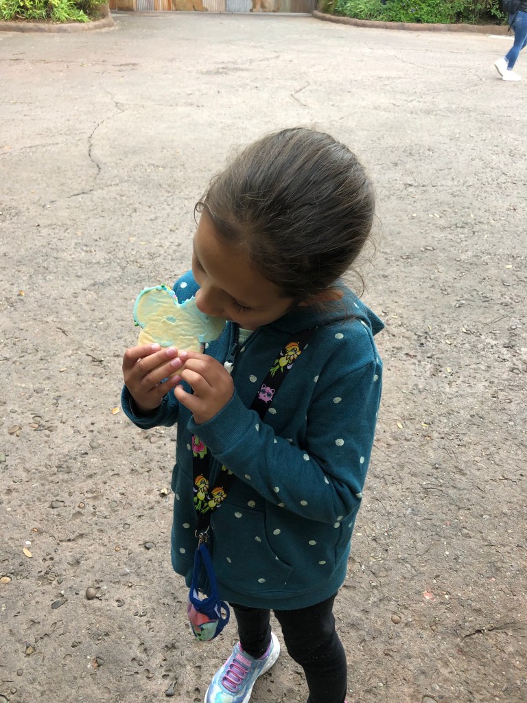 Since we were all traumatized from DINOSAUR and I was still a little frustrated from before, we did what any normal family would do in that situation: Go to a bakery. We all got our Mickey-shaped cookies and devoured them, giving us a much-needed boost. Unfortunately, we were let down a few minutes later when we were notified by a cast member that face-painting was closed indefinitely due to the pandemic. The girls had been looking forward to this activity for months, only to be let down. This is where I started agreeing with the girls, in that this just did not feel like WDW, or at least did not feel magical.
