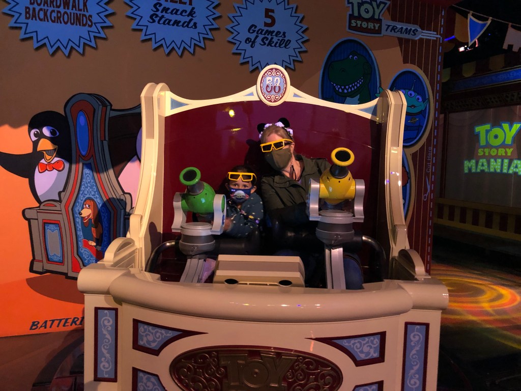 Knowing that we only had a few more minutes before the park opened for non-resort guests, I took a quick look at the app. Toy Story Mania only had a 20-minute wait, so we headed back over to Toy Story Land and hopped on it again.