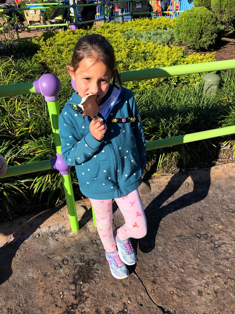 Periodically checking the app, I noticed the wait for Mickey & Minnie’s Runaway Railway had shrunk down to about 40 minutes, so the girls decided that they would be willing to wait in order to go on it again. It was just as great the second time around, and it was a double-win given that we only had to wait about 30 minutes. Yep, by the fourth park, we were at peak efficiency.