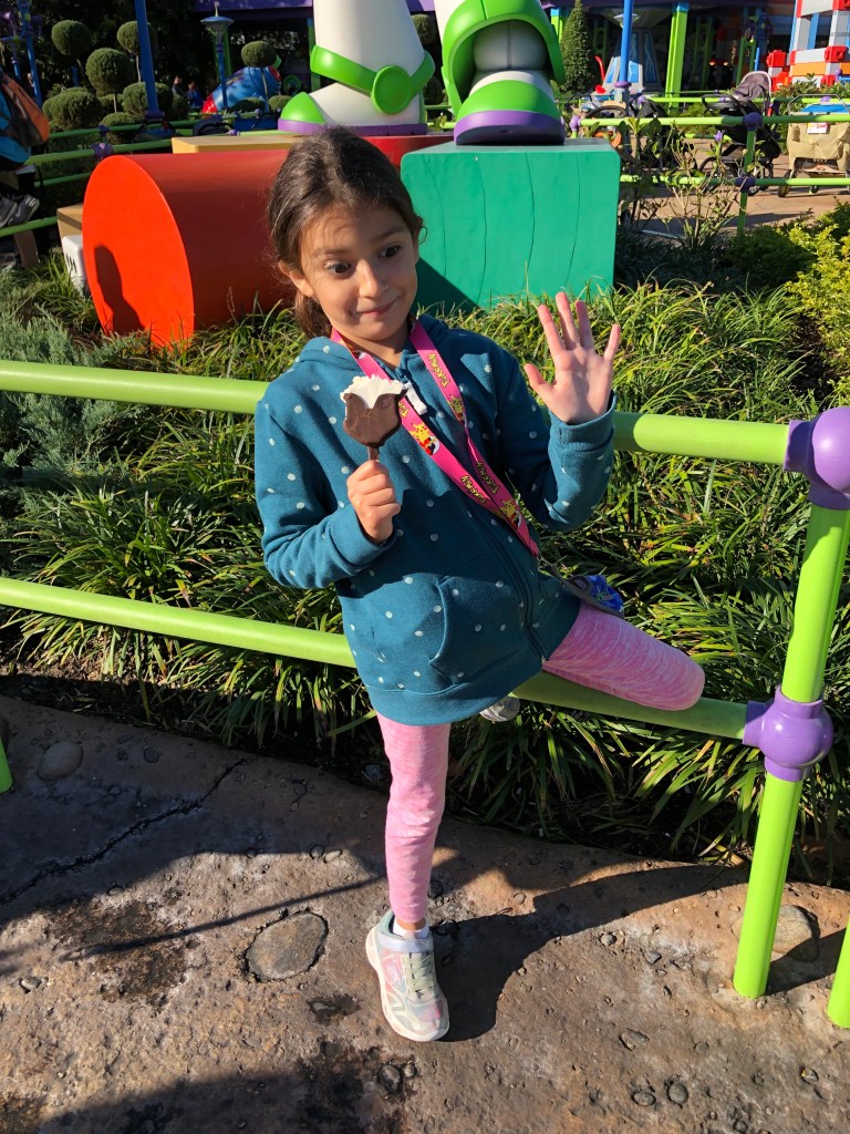 While the girls were disappointed we did not get to immediately go on Slinky Dog Dash, they had a great time on Toy Story Mania. Not only is it a very fun and interactive ride, but it lasts quite a long time and it allows us all to sit with different family members each time (Gabby was paired with me during the first ride). I had a feeling we were going to be back for more later.