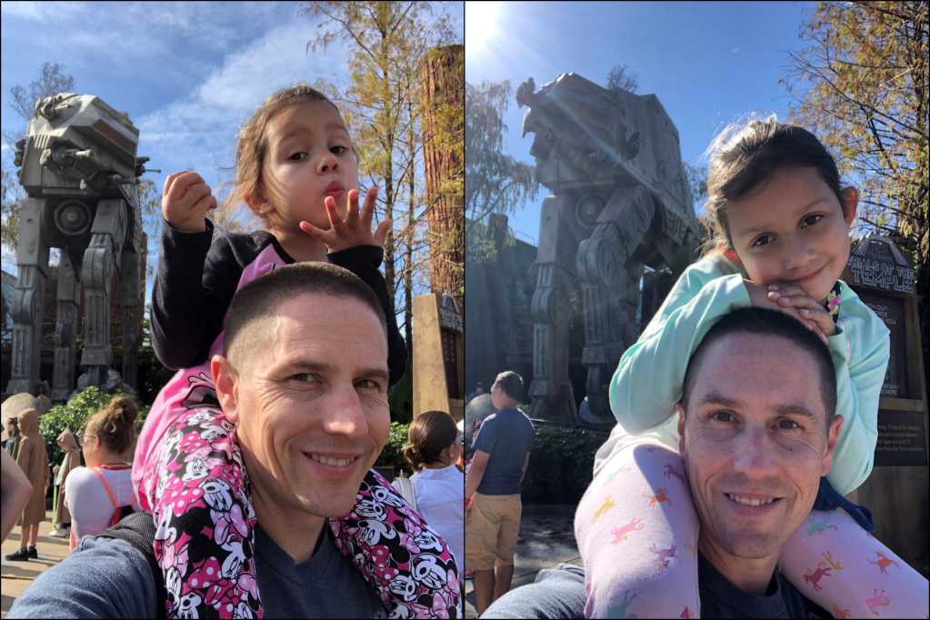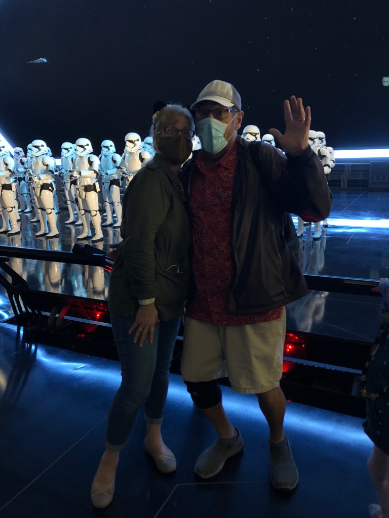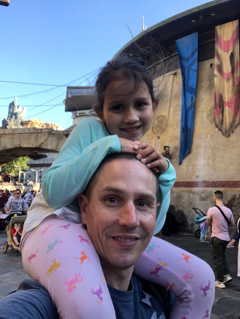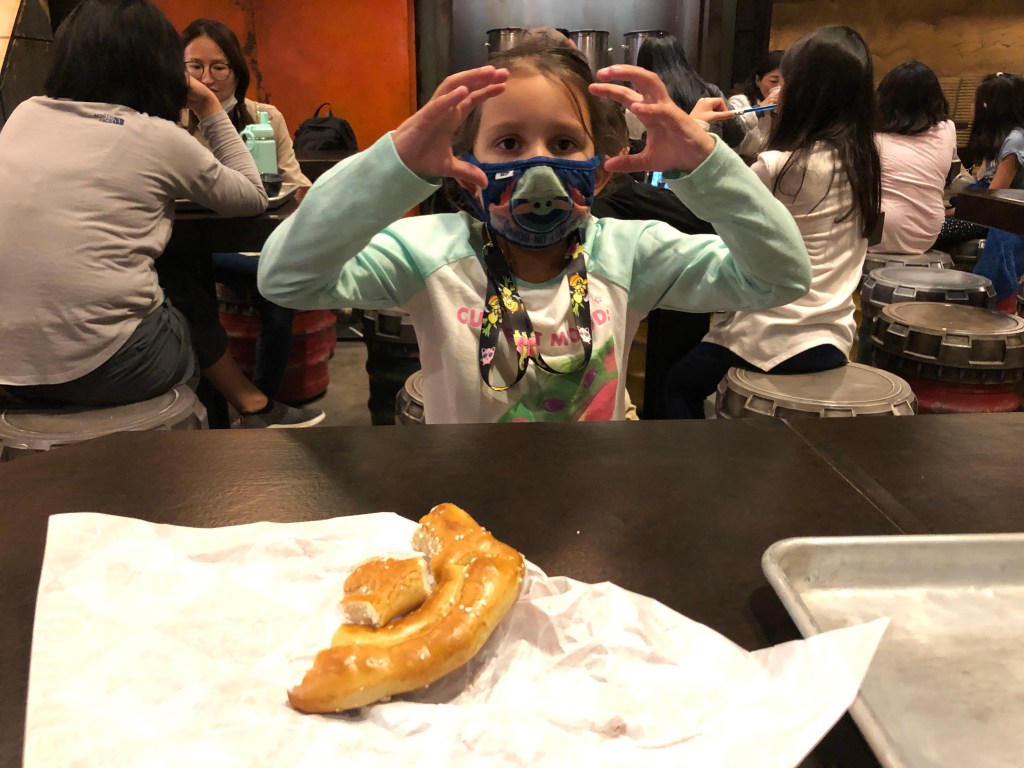 Thankfully, the ride was utterly fantastic and went well-beyond any of our expectations. It was definitely worth the $15 each. While I will not give away all the surprises, it involved two motion simulators, a trackless ride through full-size All-Terrain Armored-Transports (AT-ATs) and turbolasers, and an interactive roleplaying experience. For the latter, when we were captured by the First Order, one of the cast members a First Order Officer) glared menacingly at Gabriella, causing her to just stare back cautiously back at him. As he strode away, side-eyeing her, she turned, grabbed my leg, and started to whimper. I had to “break character” for a moment to console her, as I did not want another Avatar: Flight of Passage incident to occur. I calmed her down and we were able to enjoy the rest of the ride. But because the ride was a little intense for her (still loved it though), she made me check with a cast member afterwards to see if BB-8 was okay (spoiler: He was!).