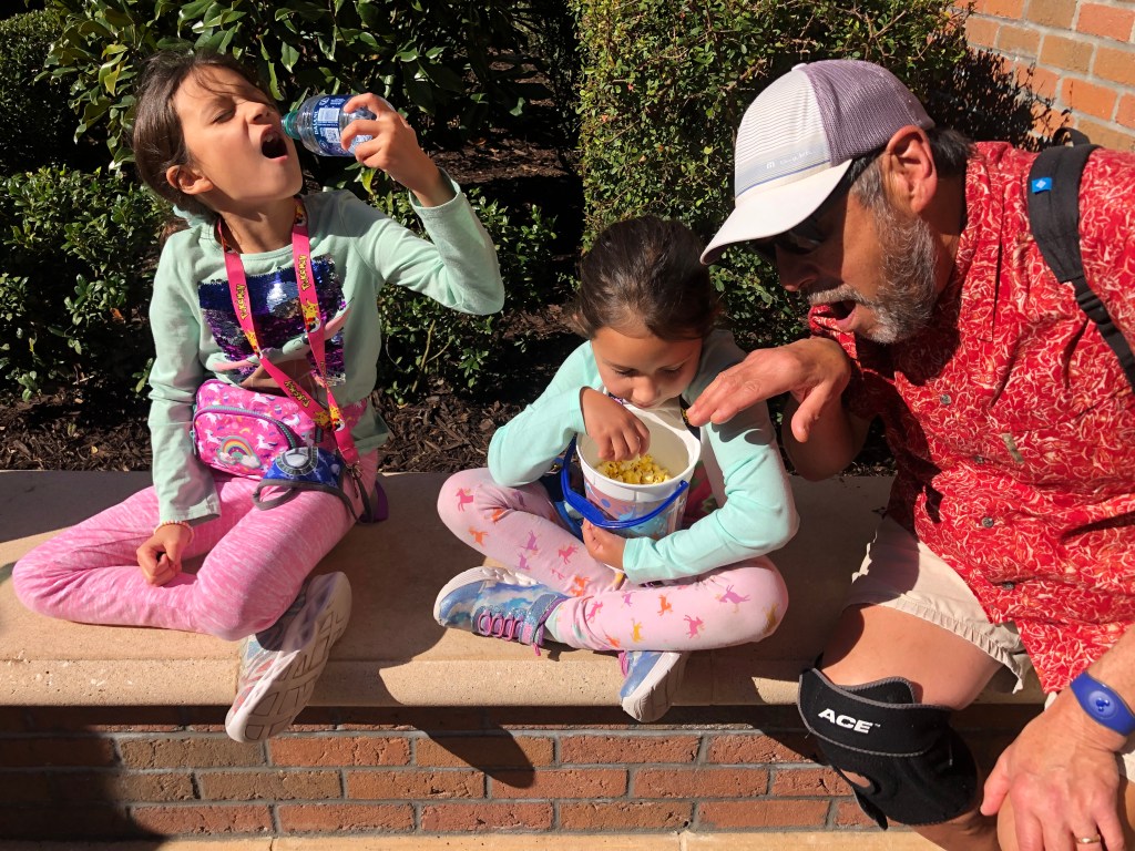 Even though the girls complained in line (“Not again!”), there were no complaints once the ride started. Gabby rode with Grandma and Elaina rode with Papa, as we kept switching who was sitting with who every ride.