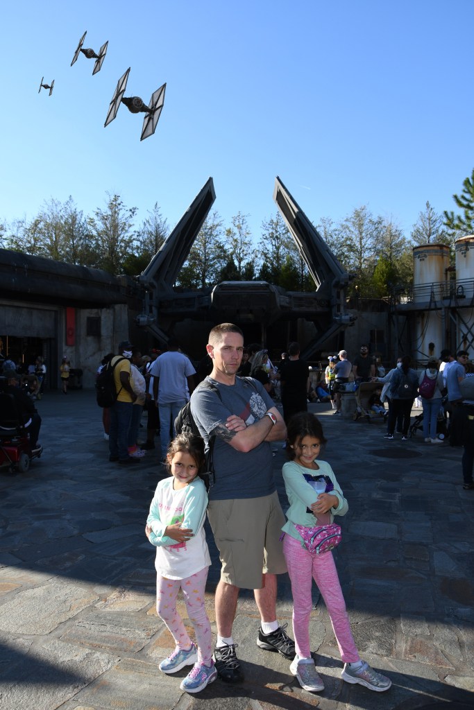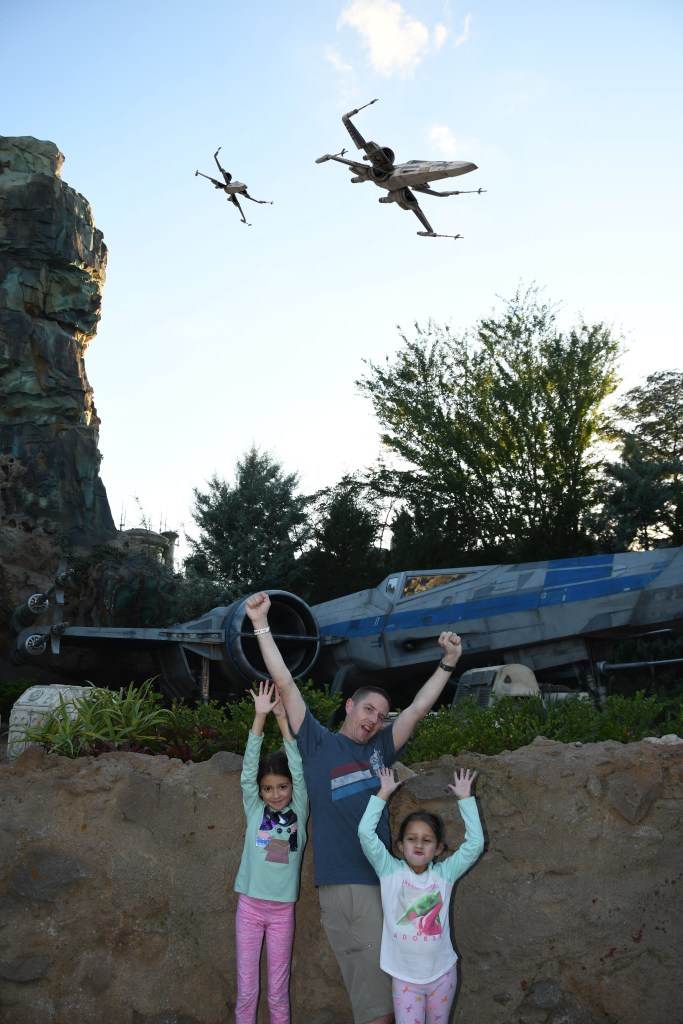 And we kept veering back to Galaxy’s Edge. And at every photo op, the girls were now getting excited for them as well, although I still pleaded, “Your 41-year old Dad would very much like to get a picture in front of this vintage Incom T-70 X-Wing Fighter… please.”