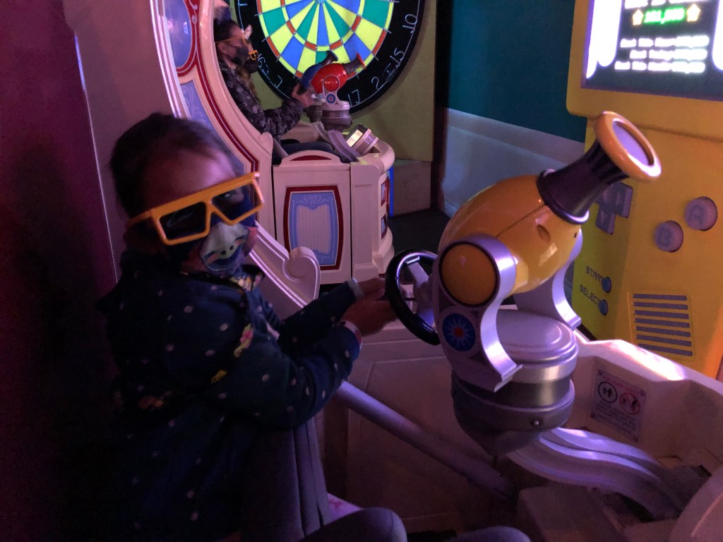 While the girls maneuvered us through space and rock formations and my parents shot down pursuing TIE fighters, I had to press a lot of buttons. Every time we got hit by a turbolaser or crashed into something, my the buttons at my station would start flashing and I had to press them to repair whatever was damaged. While it was essentially a motion simulator, it was a very interactive one where our decisions impacted the experience. We had a blast and the girls did not want to leave after the ride ended.