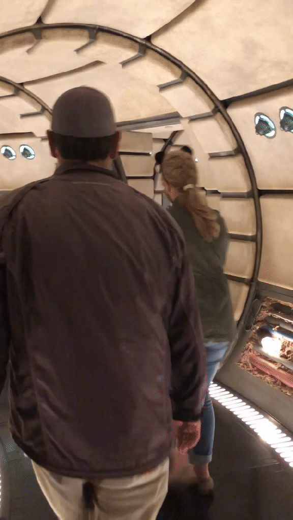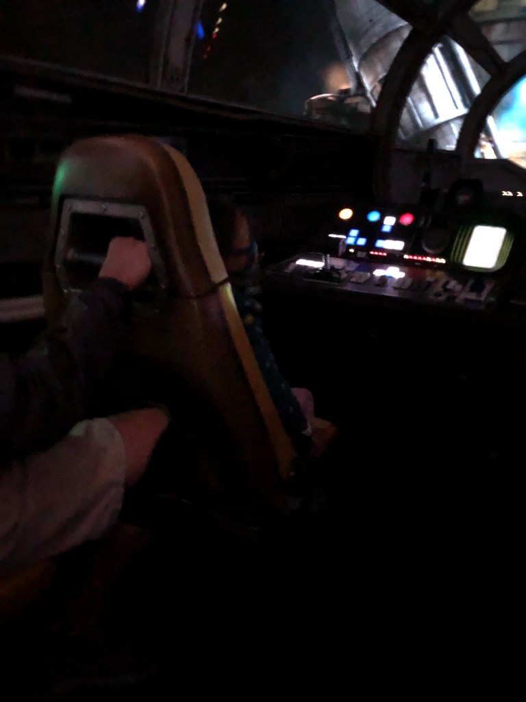 We eventually got to the Millennium Falcon, walking through its interior until we got to the cockpit. Again, this was amazing for me because of the superb level of detail that Disney had put into it. Before we entered the cockpit, we were told to choose what seats we would occupy. There were two pilots, two gunners, and two engineers. Trying to be a good parent and son, I opted for engineer seat so that everyone else could have a more interactive experience, thus crushing my lifelong dream of flying the Millennium Falcon. Elaina and Gabriella became the pilots and my parents took over the weapons terminals.