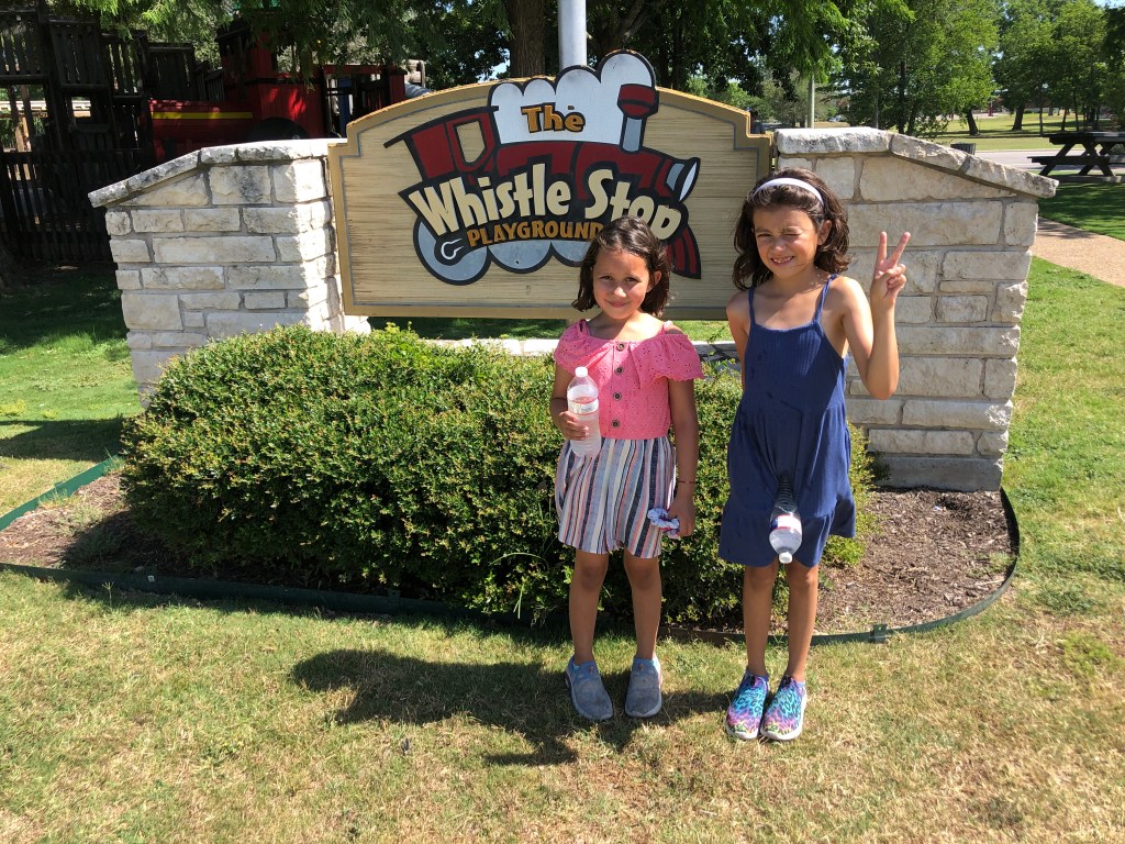 After breakfast on the first morning, the girls and I headed out to the Whistle Stop Playground in Temple. This was a train-themed playground only a few minutes from the hotel.