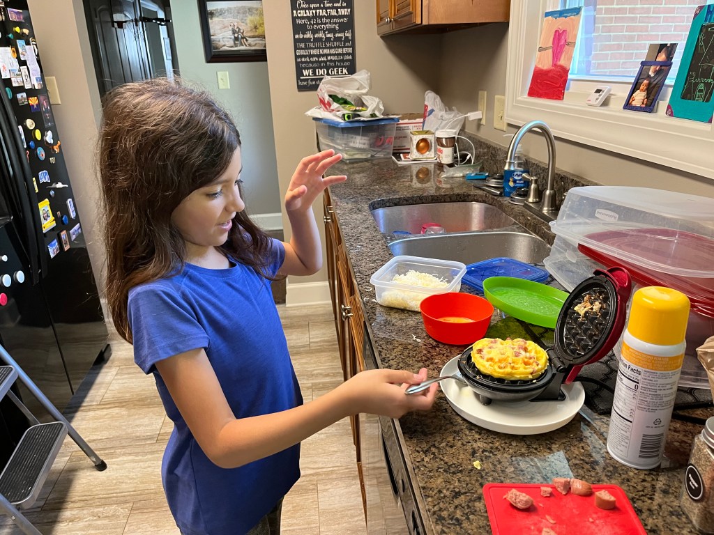 Elaina has also been cooking at her Mom’s house, so I got served hot dog and cheese omelets our first morning back. And since she can make instant ramen by herself now, she is officially ready to survive college (at least food-wise).