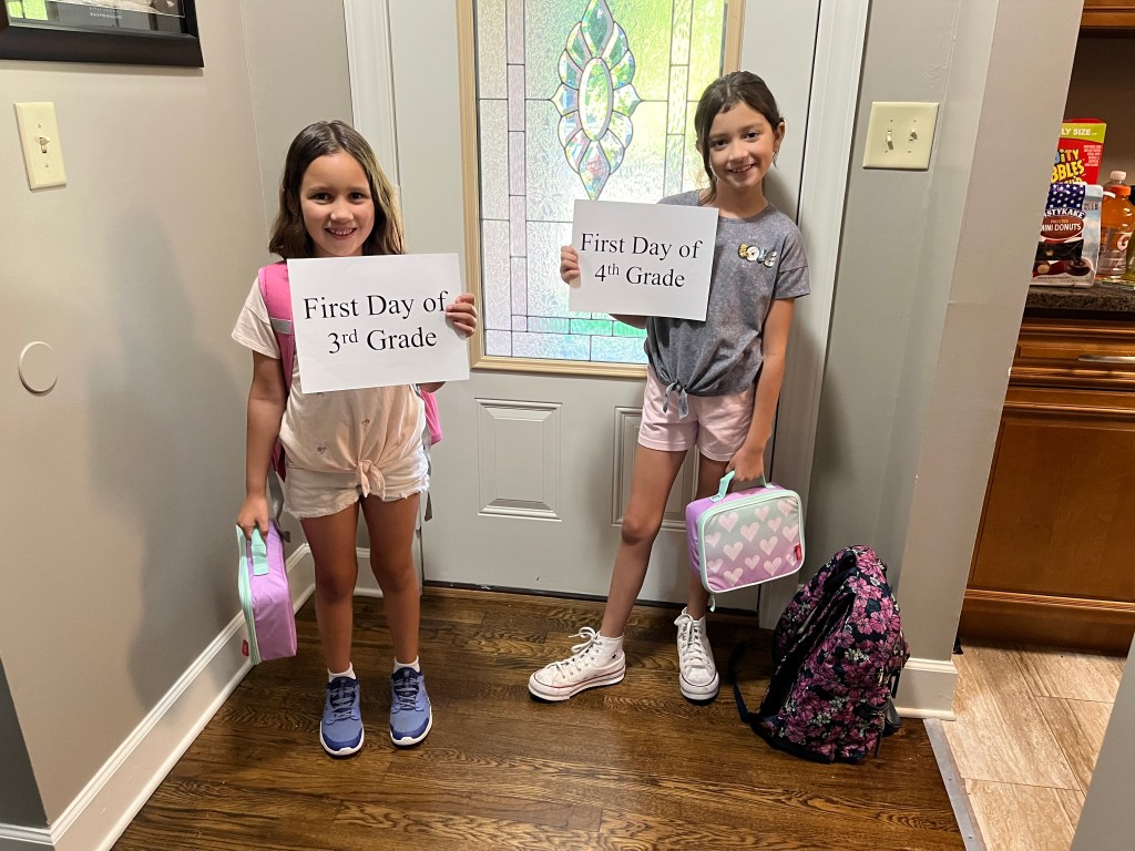 Surprisingly, things were even a little more hectic when I got back home. While the girls were extremely well-behaved around Grandma, all that stored energy seemed to come out as soon as I walked through the door. Sorry, girls, but you need calm down and focus, as we have a lot to do before drop-off. Clothes to pick out. Lunches to pack. Pre-Combat Checks (PCC), Pre-Combat Inspections (PCI), and rehearsals to conduct. Issuing a five-point contingency plan (GOTWA). Pretty standard “First Day” stuff for military children. And of course, we had hundreds of pictures to take.