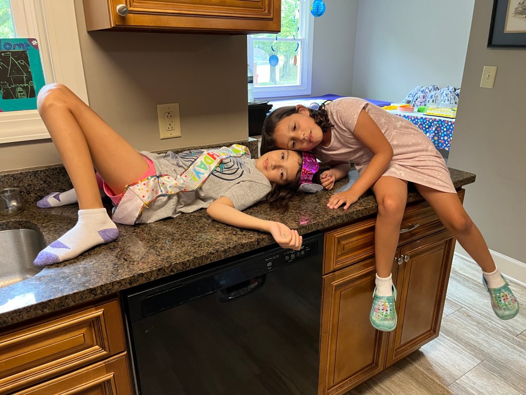 After having a good laugh at their Old Man Dad, the girls went back to the window looking for partygoers, who eventually showed up. They all arrived over the next 15 minutes, alleviating Elaina’s fears that her party was going to be a bust. With each arrival, the girls took them to the dining room to get their party backpack, grab some food, and then ran off to play in the house. While some of the kids were definitely dropped off without so much as a wave or introduction from their parents, some of the parents did stop by to chat (one parent described this “making sure that our house was not a complete mess” before leaving her kid). Not only was this a little odd, but even though it was clearly stated in the RSVP texts, families did not show up, just the invitee and (sometimes) a parent. Given that we were used to events at Fort Huachuca being family affairs, with every parent and sibling showing up for a party, this just struck me as a little odd. With the parents who did show up though, even the ones who only wanted to talk for a few minutes then leave, they ended up staying the whole time talking to one another. Because it seemed outside of the norm, I think everyone enjoyed having some food and chatting with relative strangers.