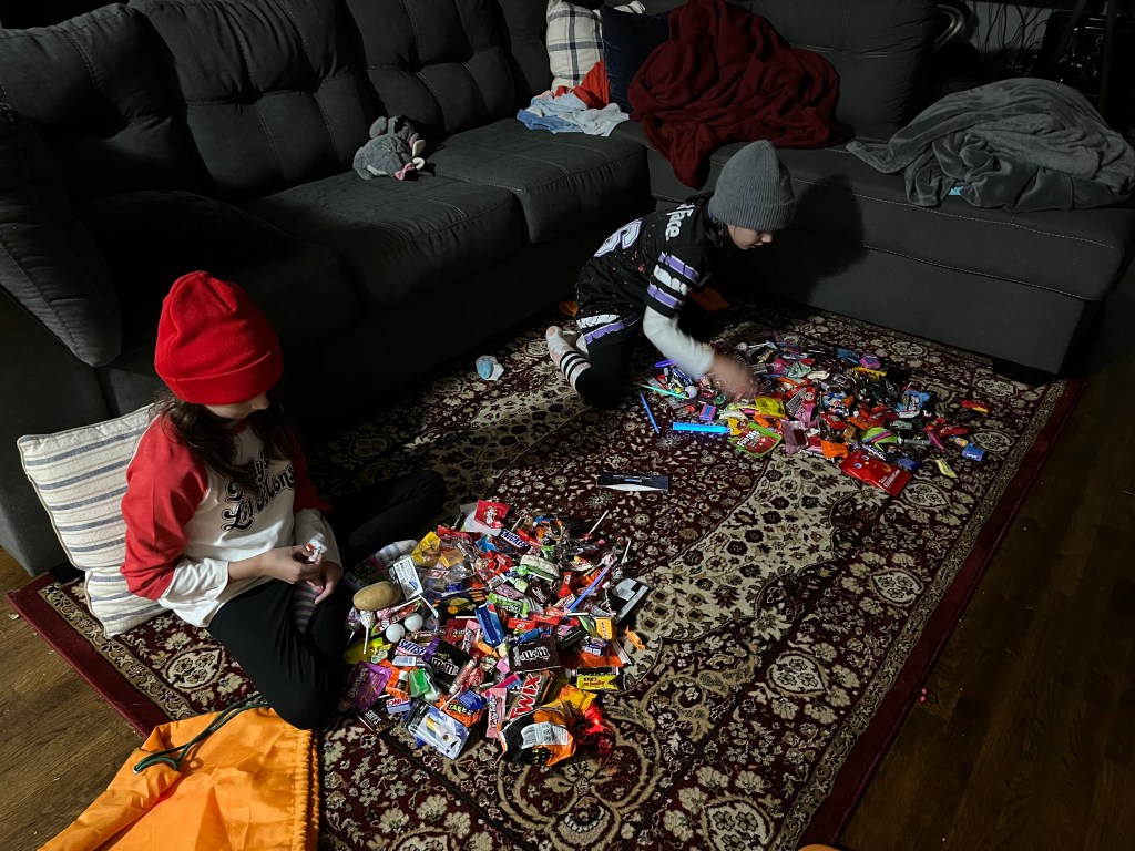 Next came our favorite part of Halloween, all for different reasons. Elaina wanted to trade candy, Gabriella wanted to eat candy, and I just wanted to organize candy.