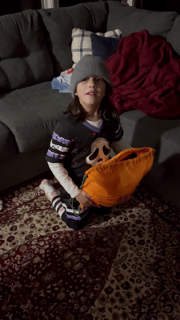 We had a great time this year, and even without a trunk-or-treat, the girls got a pretty good haul of candy. And they were really happy with the lack of a significant Dad Tax this year, because apparently no one gives out 100 Grand, Reese’s Pieces, or Heath Bars anymore. But they did get one Almond Joy, so I guess we will save that for Grandma.