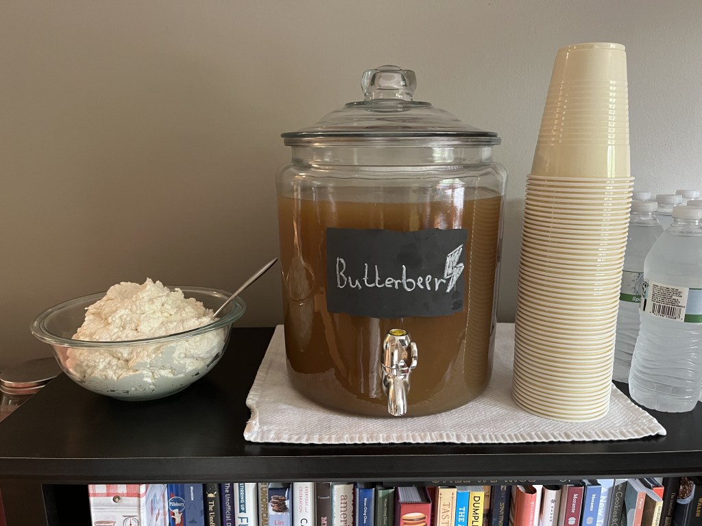 One of the most difficult things we needed to create to complete the Harry Potter experience was the Butterbeer. We tried a few online copycat recipes, but they either required hard-to-get ingredients or just tasted like caffeinated cream soda (“That’s a lot of sugar.”). Talking about the party planning at work, I found out my Sergeant Major and her family were not only huge fans of the series, but that her wife had an amazing Butterbeer recipe. It turned out great and our guests absolutely loved it.