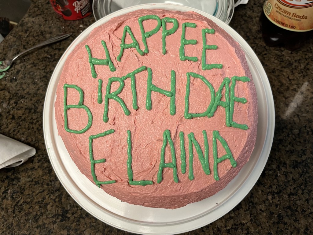 For the cake, Elaina wanted something a little different this year, specifically for me to make the cake Hagrid gave to Harry on his 11th birthday during the first movie in the series. Although I usually have far too much going with the party to also bake a cake, I wanted to make her happy, so I obliged. It did not hurt that they got to decorate and eat the leftover buttercream frosting as well.