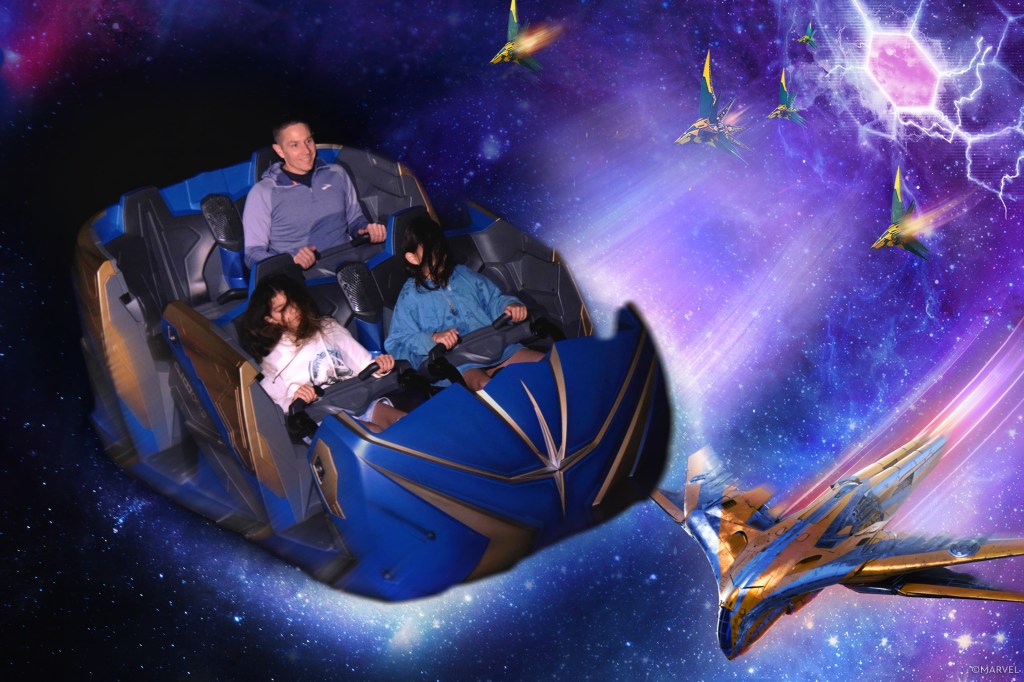 But we clearly made the right choice, as Guardians of the Galaxy: Cosmic Rewind did not disappoint. In fact, I think it was my favorite ride of the entire trip, narrowly beating out Hagrid’s Magical Creatures Motorbike Adventure (by the slimmest of margins); the girls said their favorite ride was either this, Hagrid’s, Rock ‘n’ Roller Coaster Starring Aerosmith, Tiana’s Bayou Adventure, or Space Mountain, so it certainly ranked up with the best. As we were in line, the girls and I debated on what we thought the ride was going to be about (story) and how it was going to go (ride). We threw out words like “backwards,” “time travel,” and “upside down,” but really had no idea what to expect. I would love to describe exactly why it is so awesome, but that would definitely be in spoiler territory, and I do not want to ruin it for you. In fact, we were speaking to a couple on the monorail who asked us if we had been on it before; since we had not, they refused to tell us, simply because they did not want to ruin our experience either. And we were so glad they did not, because it was epic. So get in the virtual queue for this ride, being cognizant of your potential callback time, because you will not be disappointed. Every single part of this attraction, including the queue (more / new Guardians of the Galaxy footage!), story, and ride, were awesome.