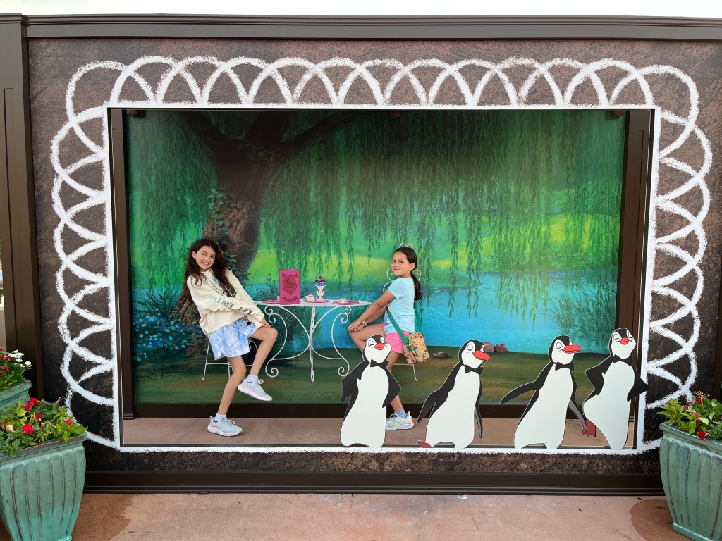 And they were a perfect wind-down from the week of hurrying from one ride to the other. That is partially why I chose EPCOT as our last park, a place where we could just relax, enjoy each other’s company at a leisurely pace, and eating some of the best food at WDW. Nabbing our second to last Lightning Lane, we went on Soarin’ Around the World, a first for the girls and I. They really enjoyed it, especially the thrilling transitions between regions, and it was a good attraction to go out on.