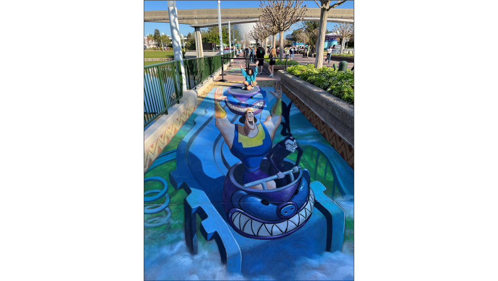 With our first Lightning Lane not until 11:30am, we decided to walk back around the World Showcase, taking our time. On the way, we stopped to watch some finished and in-progress chalk drawings as part of the International Festival of the Arts.